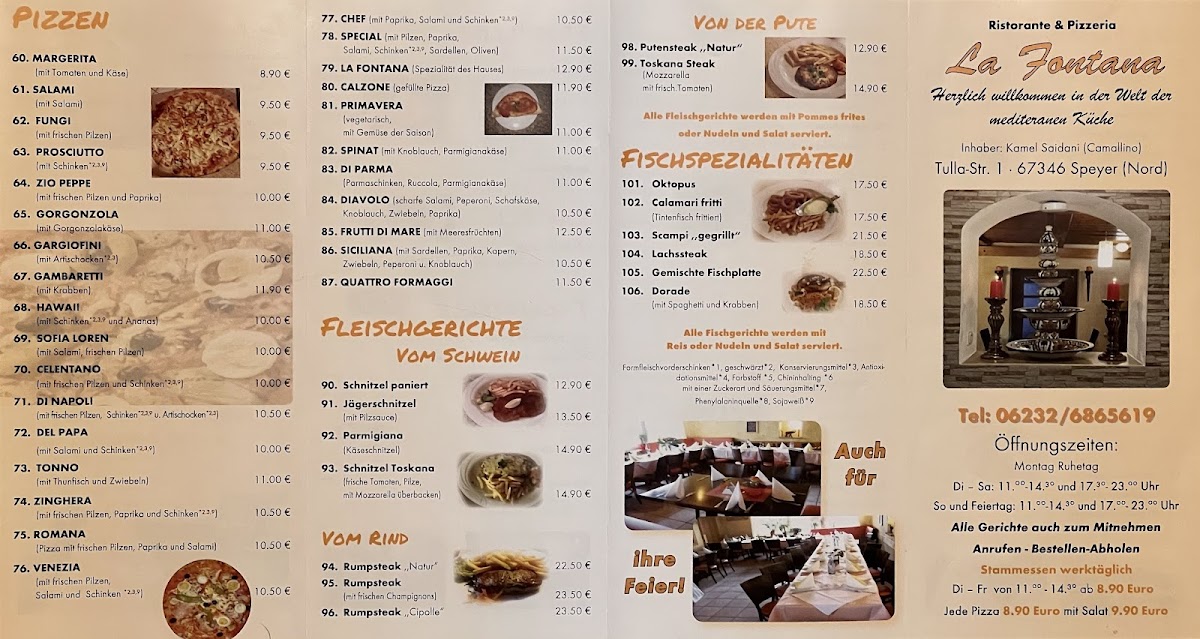 Welcome to La Fontana Restaurant, a hidden gem located at Tullastraße 1 in Speyer, Germany. This charming Italian eatery is celebrated for its fresh, delectable dishes that are a feast for both the eyes and palate. Guests rave about the quality of ingredients, especially the superb tomato sauce and perfectly cooked Dorada. The restaurant prides itself on a varied menu that caters to every taste, offering generous portions at remarkable prices.